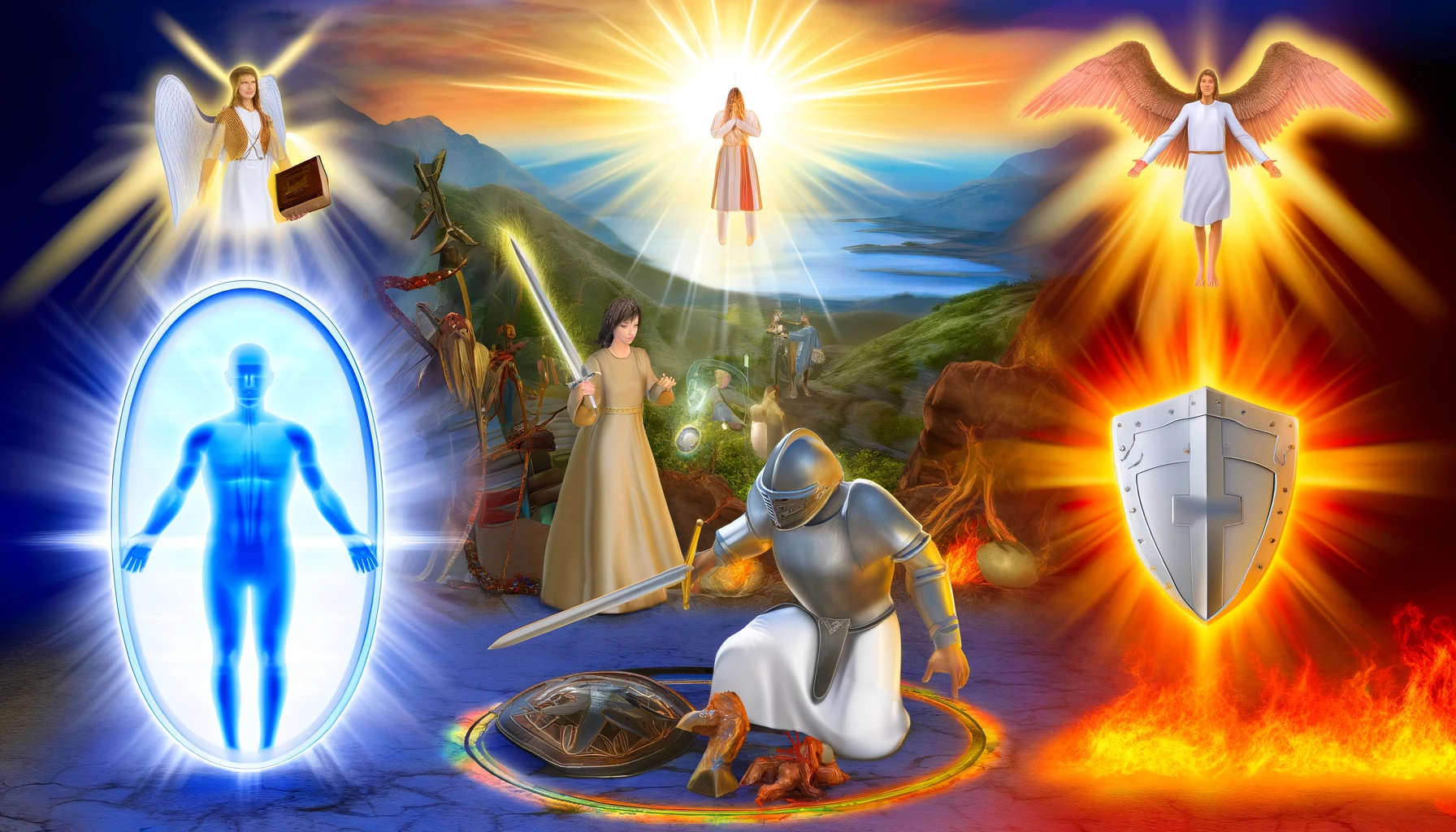 - Armor of God: Spiritual armor described in Ephesians 6:10-18, including truth, righteousness, faith, salvation, the Word of God, and prayer.