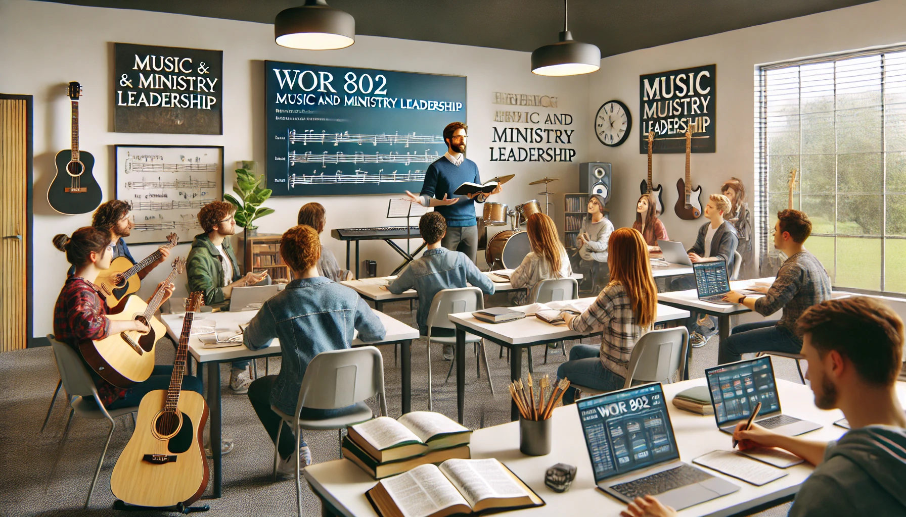 WOR 802 provides an in-depth study of music and ministry leadership, equipping students with tools to effectively lead worship music ministries. The course integrates biblical teachings with contemporary leadership strategies to enhance the role of music in ministry.